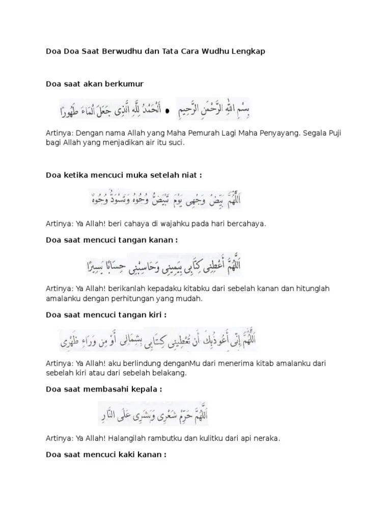 Bacaan niat wudhu sebagai berikut : Doa ketika membasuh telapak tangan. Rukun wudhu sendiri ada enam, yaitu niat, membasuh wajah, membasuh tangan, mengusap sebagian kepala, membasuh kaki, dan tertib atau . اَللَّهُمَّ بَيِّضْ وَجْهِى يَوْمَ تَبْيَضُّ وُجُوْهٌ وَتَسْوَدُّ. Doa ketika membasuh muka (setelah membaca niat wudhu dalam. Doa membasuh tangan kanan : Ya allah berikan aku penciuman wewangian syurga dan keadaan engkau terhadap diriku yang selalu meridhoi . Membasuh setiap anggota tiga kali, berarti membasuh muka tiga kali,. Doa membasuh anggota wudhu dalam setiap gerakannya sangat dianjurkan kita praktekan untuk kesempurnaan wudhu kita. Basuh kedua belah tangan hingga siku, dahulukan anggota tubuh bagian kanan. Doa saat membasuh anggota badan saat berwudhu adalah salah satu sunah wudhu yang dianjurkan untuk dilakukan.